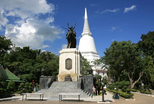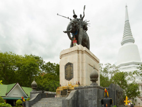 One is a royal monument erected in honor of the Siamese victory, whilst the other is a pagoda, or Chedi, enshrining relics. It is chronicled that in 1592, King Naresuan the Great defeated Phra Maha Upparacha, leader of the Burmese army, in a fierce royal duel on elephant-back.