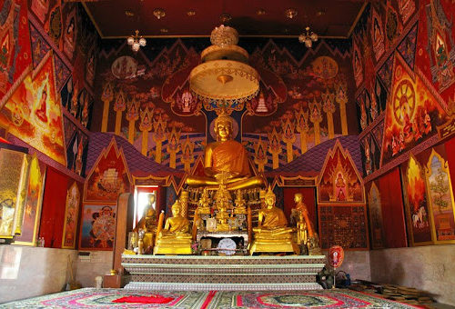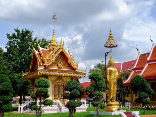 Beside the Buddha's footprint, the sermon hall also has a Dhammas Busshabog Yod Maha Gathin, or a pulpit throne with four posts and pointed roof highly crafted and decorate with exquisite Ayutthaya artistry.