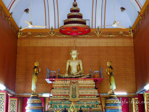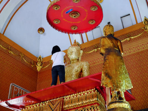 Placed in the Ubosot, on a largely raised altar, one must climb several steps to reach this Buddha effigy named Luang Po To (หลวงพ่อโต).