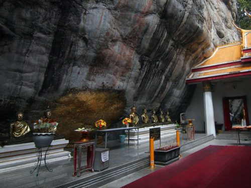 Inside appears a faint mark of Buddha appearance on the cliff. The legend has it that in the past, Lord Buddha came here to save the misconceived huntsmen 'Kataga' from sin until he attained Arahat. On the Buddha departure, Kataga monk wanted to accompany him. However, Lord Buddha barred him, and asked him to stay and propagate Buddhism instead. Therefore, Kataga monk asked the Buddha to leave some traces for him to pay homage.