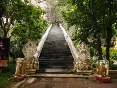 Travellers can take a circuitous way to park their cars up there, and walk a bit further to worship the right footprint of Lord Buddha. Meanwhile, they can also enjoy a terrific panoramic view of villages and mountain ranges around Khao Phuttachai as well.Wat Phra Phuttachai covers a large area at the foothill, it grows shady with leaves of giant trees. Upon arrival at the temple, visitors will see Naga staircase leading to Mondop of Phra Phuttachai.