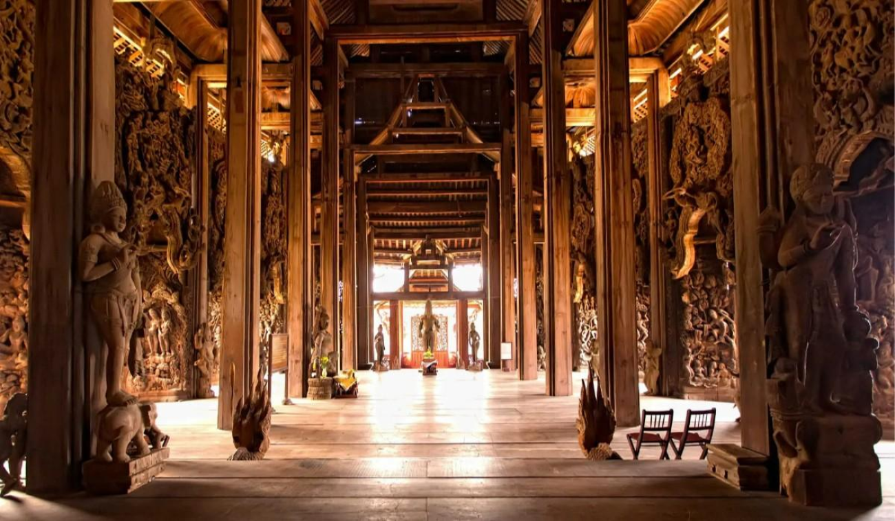 Your journey then takes you to Pattaya, where you can experience the awe-inspiring Sanctuary of Truth, a magnificent wooden structure that stands as a testament to ancient craftsmanship and spiritual beliefs.